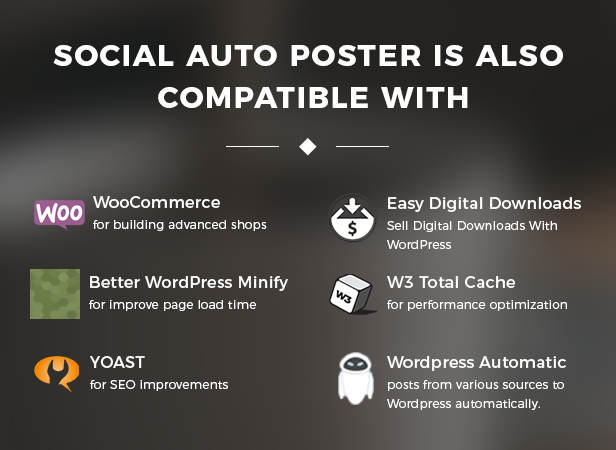 - Compatible:- Social Auto Poster works with almost all the eCommerce plugins perfectly and seamlessly.